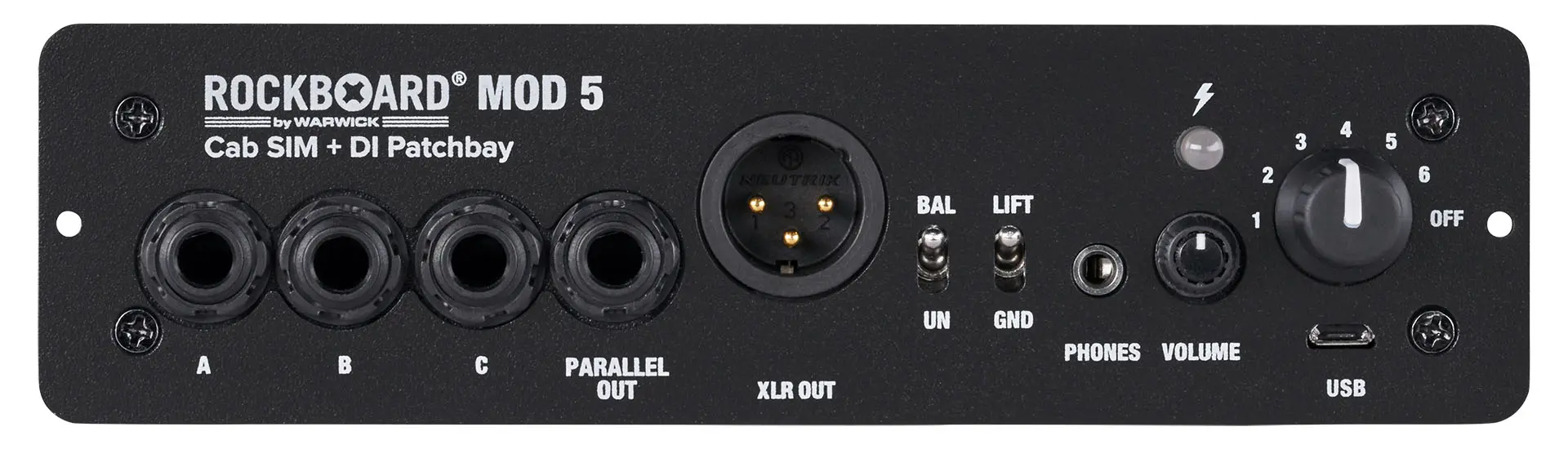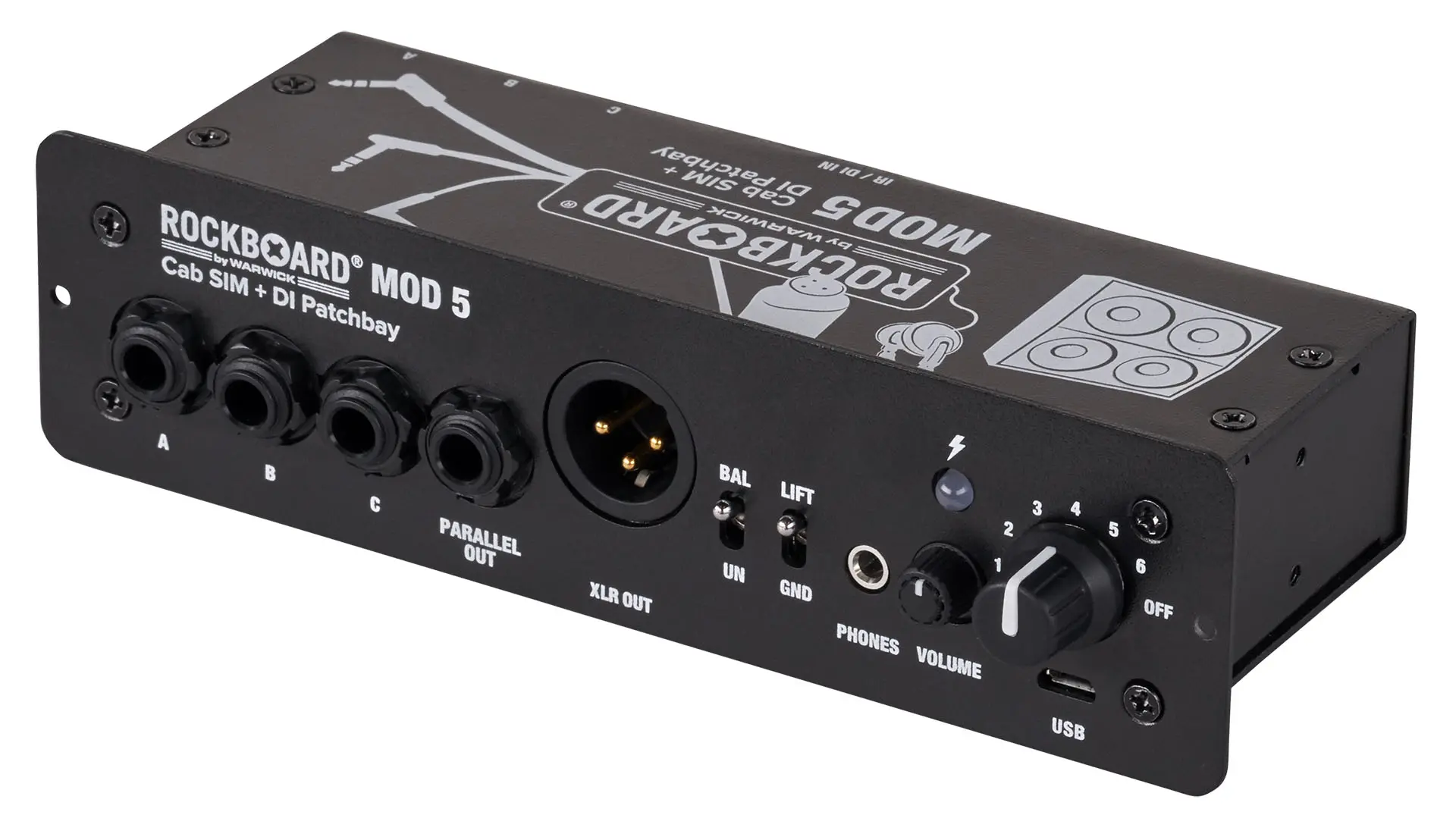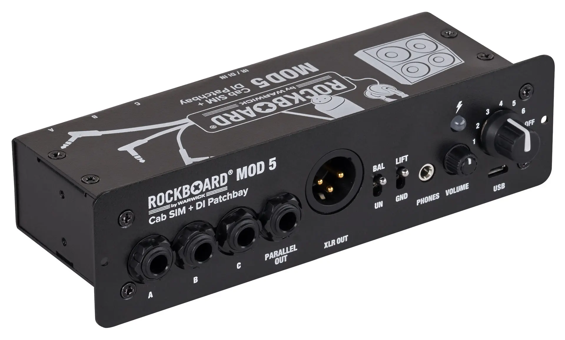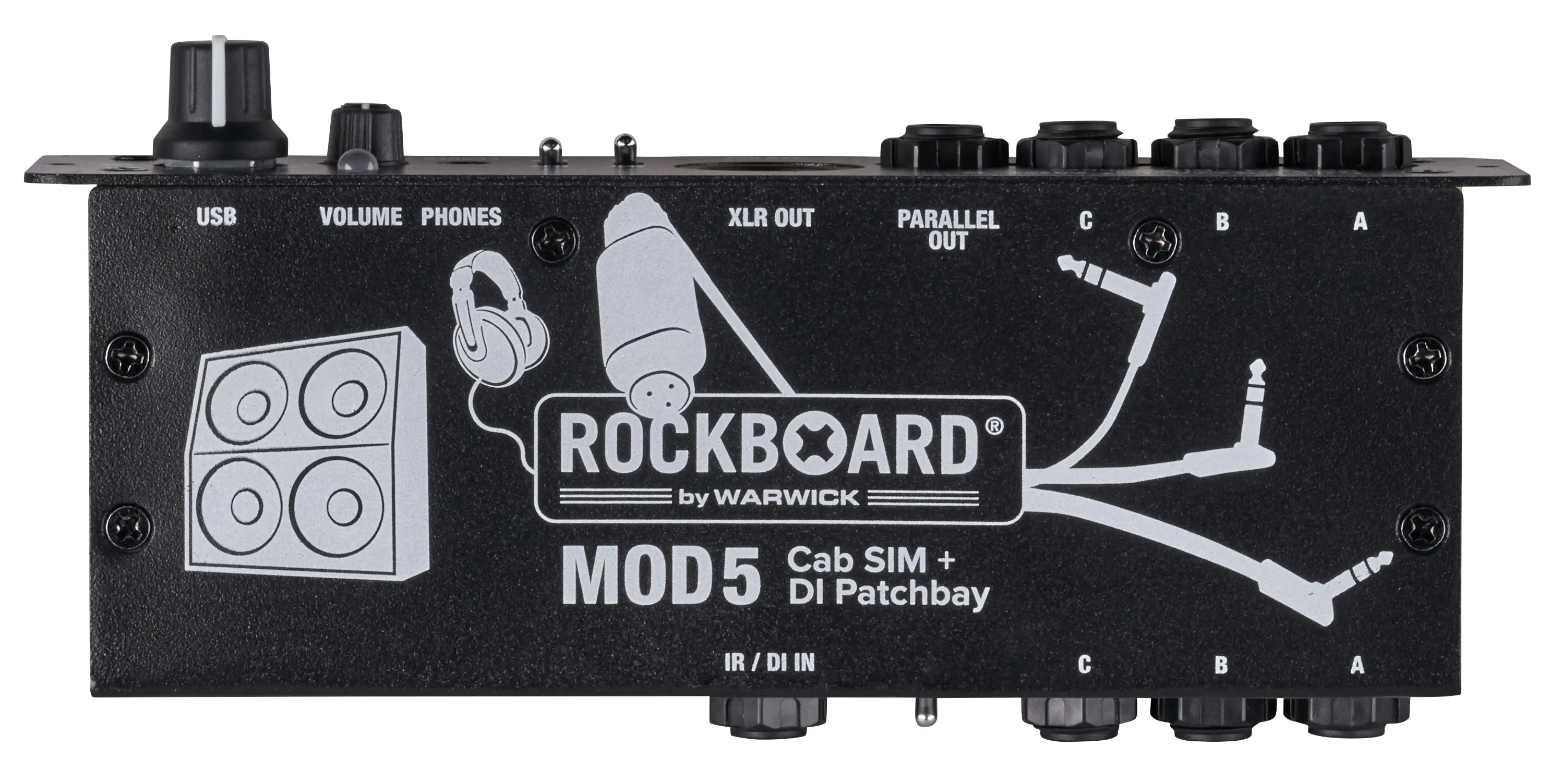 Die RockBoard® MOD 5 Cab SIM + DI Patchbay bietet 6 wählbare, IR-basierte Stereo-Lautsprecher Simulation, eine aktive DI-Box, sowie eine einfache Lösung, um alle Verbindungen zu und von deinem Effekt Setup zu organisieren. Egal, ob du ein RockBoard oder ein Pedalboard einer anderen Marke verwendest - das MOD 5 eröffnet völlig neue Möglichkeiten. Mit der Speaker-Cab-Simulation und DI kannst du direkt loslegen und hast DEINEN Sound parat, unabhängig davon, welche Backline an der jeweiligen Venue zur Verfügung steht. Du möchtest deine persönliche Lieblings-Cabinets benutzen? Kein Problem, lade eine Impulse Response des Sounds in das MOD 5 und Du hast sie überall dabei. Der Patchbay-Teil dient dazu, Verbindungen von unterhalb deines Pedalboards nach vorne zu leiten, um Dir einen zentralen Zugangspunkt zu deinem Setup zu geben und deinen Kabelsalat aufzuräumen. Für geräuschloses Spielen mit dem Pedalboard ist ein Kopfhörerverstärker mit einstellbarer Ausgangslautstärke integriert.