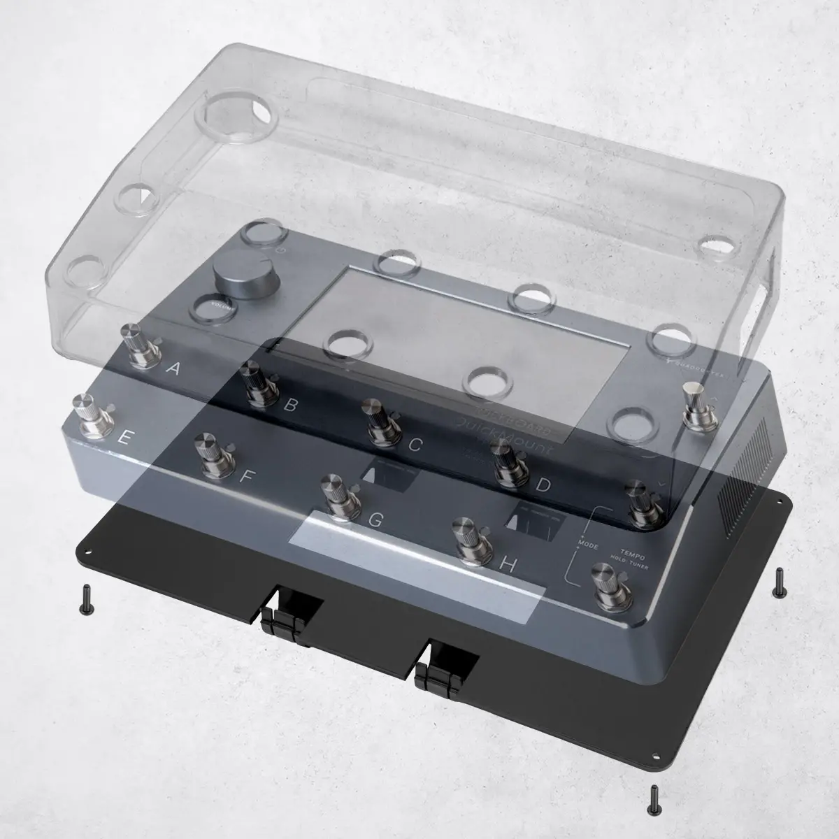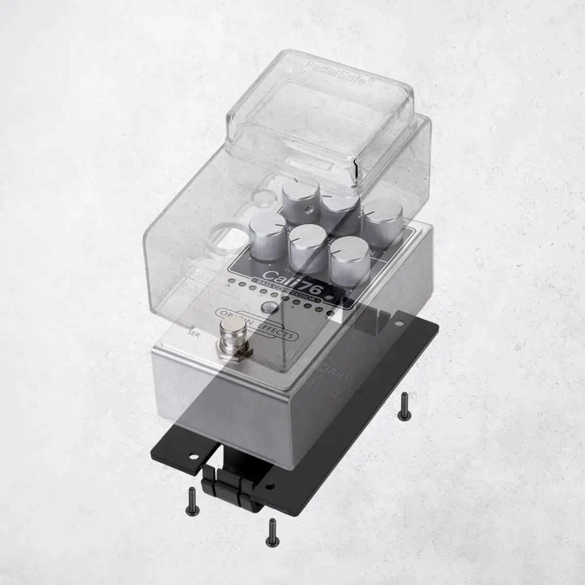 Die innovativen RockBoard PedalSafe-Schutzabdeckungen bieten einen perfekten Schutz für Effektpedale und sind für beinahe jedes Effektpedal-Format in einer passenden Produkt-Variante verfügbar. Das Design wurde speziell für den Live-Einsatz optimiert: Die Fußschalter können ungehindert betätigt werden, die Regler-Einstellungen sind sichtbar und geschützt vor ungewolltem Verstellen während das Pedal gleichzeitig vor allen äußeren Einflüssen geschützt wird. Die Sets kommen entweder mit QuickMount-Montageplatten für die sichere Befestigung auf unseren RockBoard Pedalboards oder mit Universal-Montageplatten für die Verwendung auf Pedalboards von den meisten anderen Herstellern.