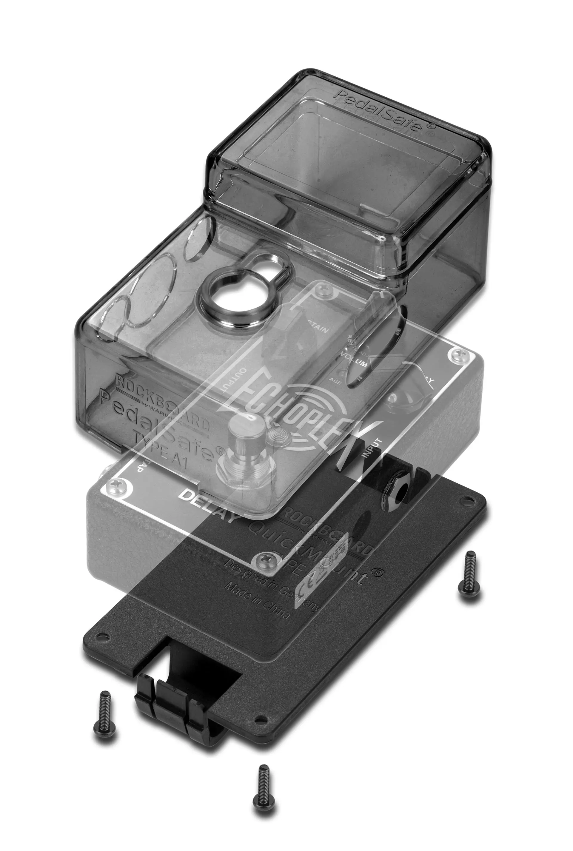 Das RockBoard PedalSafe-System wurde entwickelt, um Effektpedale sicher, sauber und in makellosem Zustand zu halten. Die flexible PedalSafe Typ A1.1 Schutzabdeckung und die QuickMount Pedal-Montageplatte passen für MXR standard size and Dunlop Echoplex Delay Pedale. Durch die kristallklare Pedalabdeckung kann man die Einstellungen sehen, durch das Cover sind sie aber optimal gegen unbeabsichtigtes Verstellen geschützt. Das Set enthält die Schutzabdeckung (PedalSafe) und die RockBoard-Montageplatte (QuickMount). Das RockBoard QuickMount-System wurde entwickelt, damit umständliches Klettband, das Staub und Schmutz anzieht und sich nur mühsam von Pedalen entfernen lässt, endlich der Vergangenheit angehört. Die QuickMounts passen perfekt in das RockBoard Slot Grid auf unseren Pedalboards und ermöglichen die sofortige, sichere Montage von Effektpedalen. Die QuickMount Plates können mit den Originalschrauben (oder den mitgelieferten Ersatzschrauben) auf der Rückseite der Pedale angeschraubt und ohne Rückstände leicht entfernt werden.