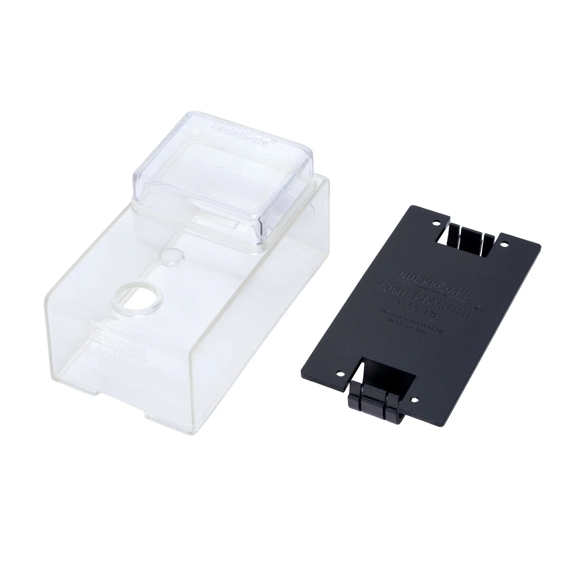 Das Set beinhaltet sowohl die PedalSafe-Schutzabdeckung als auch die QuickMount-Montageplatte. Das QuickMount-System wurde als saubere und praktische Alternative zu herkömmlichem Klettband entwickelt, das Staub und Schmutz anzieht und sich nur schwer von Pedalen entfernen lässt.