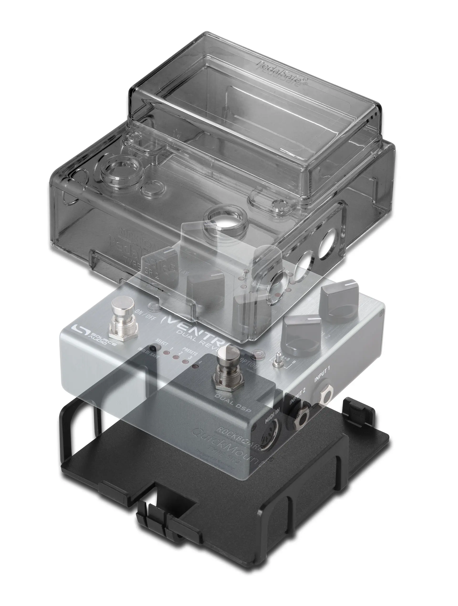 Das RockBoard PedalSafe-System wurde entwickelt, um Effektpedale sicher, sauber und in makellosem Zustand zu halten. Die flexible PedalSafe Typ SR2 Schutzabdeckung und die QuickMount Pedal-Montageplatte passen für SOURCE AUDIO Ventris Dual Reverb, 263 Collider & Nemesis Delay Pedale. Durch die kristallklare Pedalabdeckung kann man die Einstellungen sehen, durch das Cover sind sie aber optimal gegen unbeabsichtigtes Verstellen geschützt. Das Set enthält die Schutzabdeckung (PedalSafe) und die RockBoard-Montageplatte (QuickMount). Das RockBoard QuickMount-System wurde entwickelt, damit umständliches Klettband, das Staub und Schmutz anzieht und sich nur mühsam von Pedalen entfernen lässt, endlich der Vergangenheit angehört. Die QuickMount passen perfekt in das RockBoard Slot Grid auf unseren Pedalboards und ermöglichen die sofortige, sichere Montage von Effektpedalen. Die QuickMount Plates können mit den Originalschrauben (oder den mitgelieferten Ersatzschrauben) auf der Rückseite der Pedale angeschraubt und ohne Rückstände leicht entfernt werden.