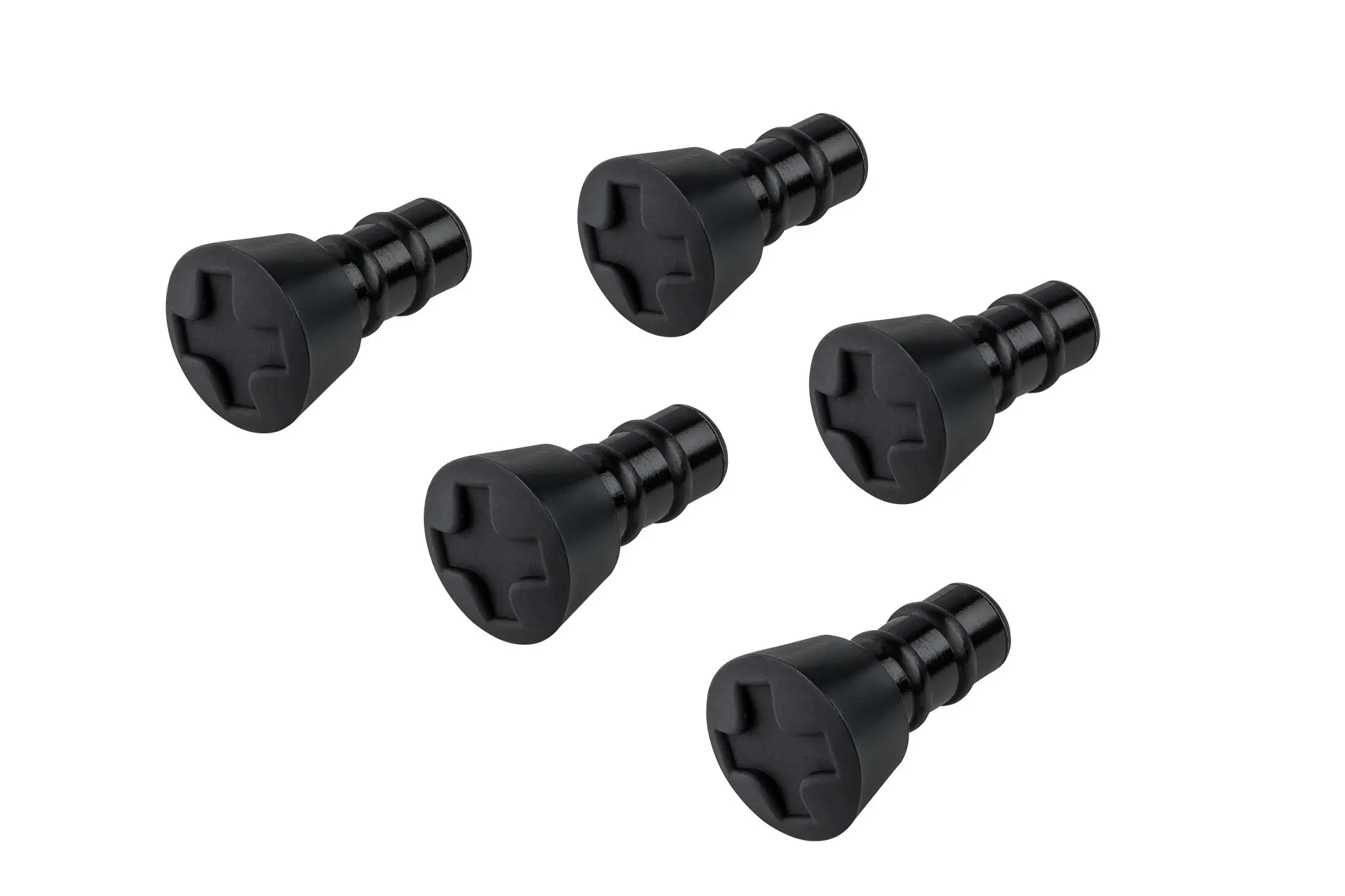 Made from durable black TPE plastic, these covers maintain clean connections while their subtle design blends seamlessly with professional gear. A practical advantage is how they clearly identify unused jacks - the black covers visually mark available ports, preventing accidental use until needed. The button grip ensures easy handling when installing or removing them.