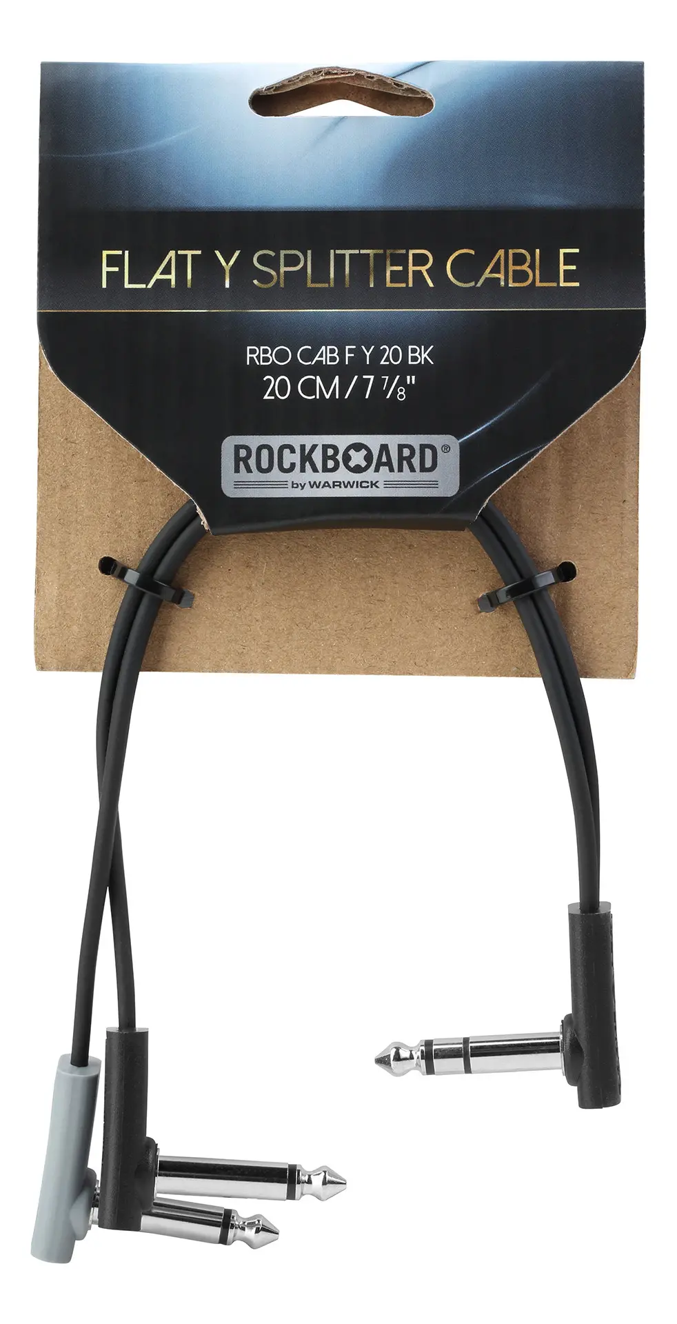 The RockBoard Flat Y-Splitter cable is extra flat and space-saving. Designed to optimize pedalboard real estate, it features a slim rectangular body and very thin angled plugs. It keeps the setup tidy and neat looking and guarantees a short, clean signal path and pristine signal quality.