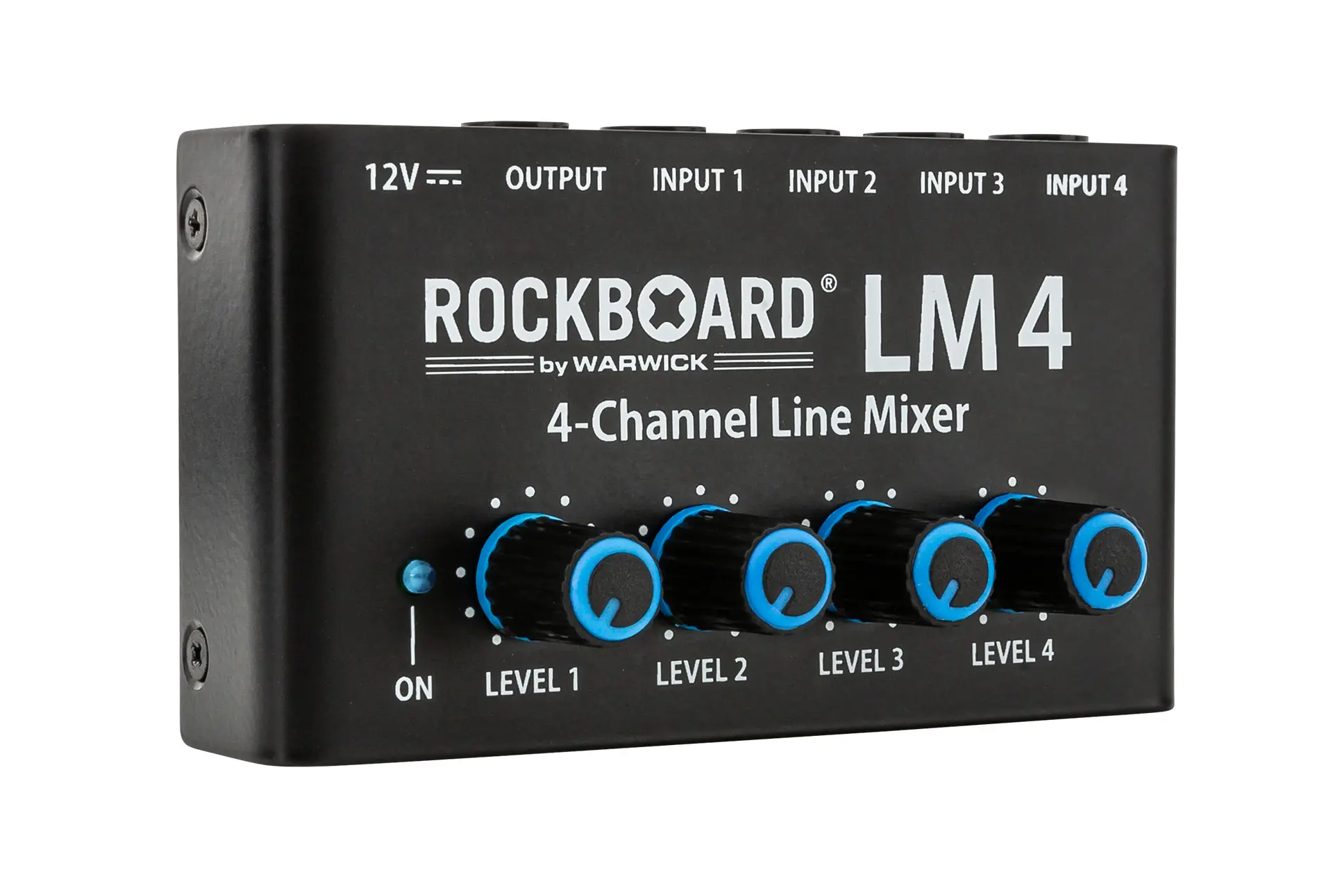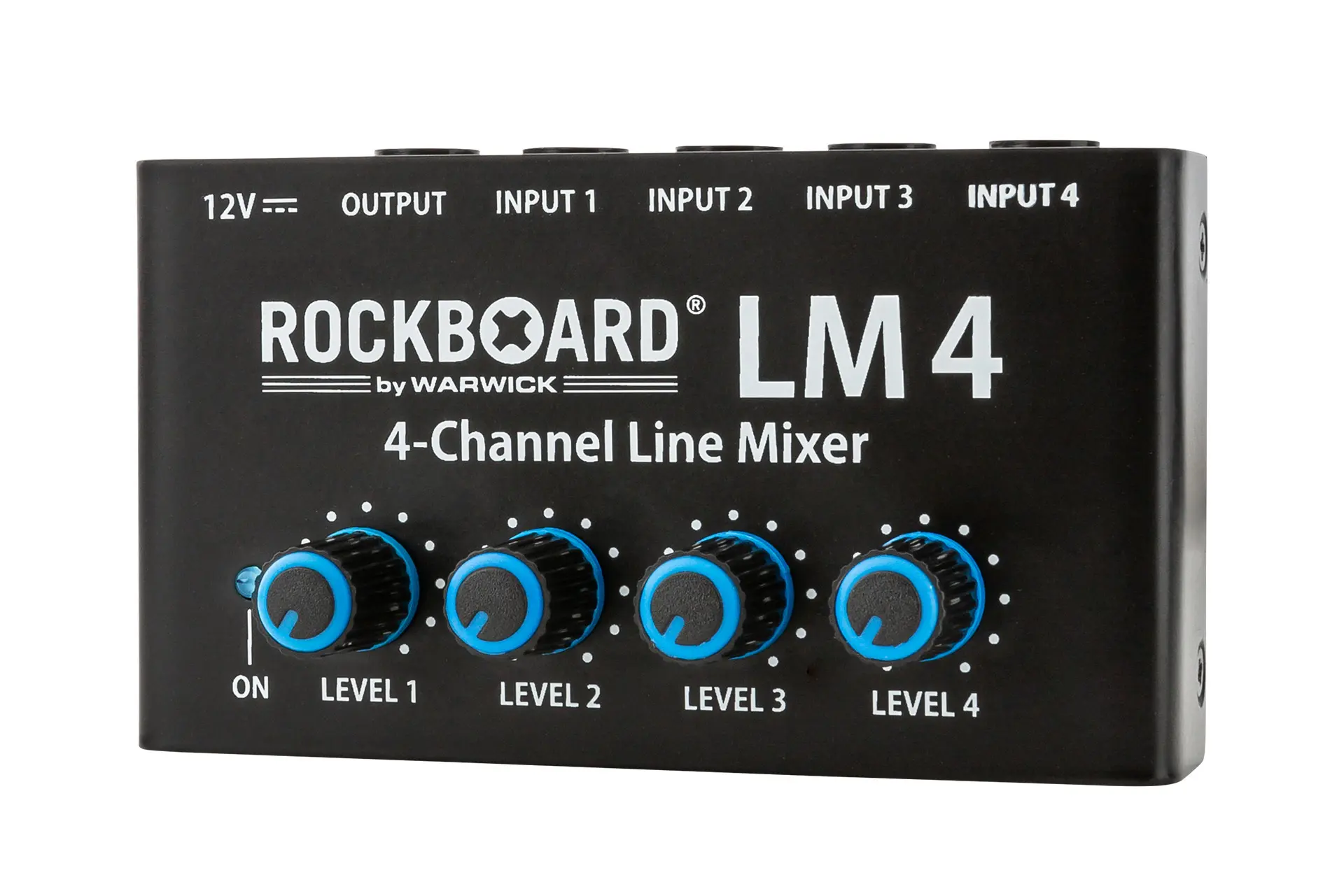 The RockBoard® LM 4 is a very compact four-channel line mixer capable of combining four mono line level input signals into one mono line level output. Each of the four input channels has its own amplifier and its own volume control and delivers professional low-noise audio quality. Its robust and compact design makes the LM 4 the ideal choice for studio and live situations. Ideal as a sub-mixer, for example for multiple keyboards, to avoid taking up valuable channels on the mixing console.