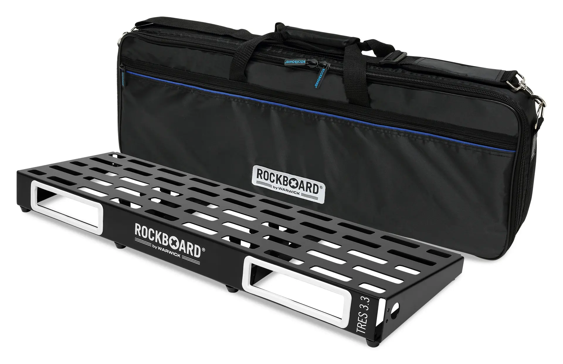 Made from a single sheet of cold-rolled aluminum, the ingenious, lightweight, stiff and rugged construction features vertical support struts for added stability and has not a single welded seam. The result is a completely flat and torsion-resistant surface that can be used edge-to-edge. The innovative slot design allows all cables to be conveniently and neatly routed under the board's surface. The precisely defined slot pattern provides a perfect fit for our innovative QuickMount system, which eliminates the need for hook & loop tape. Almost all common power supplies can be mounted on the underside. A Premium Gig Bag or sturdy Flight Case is included for safe transportation. Your choice.