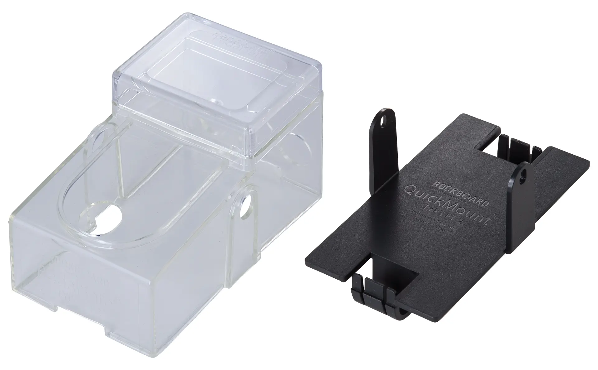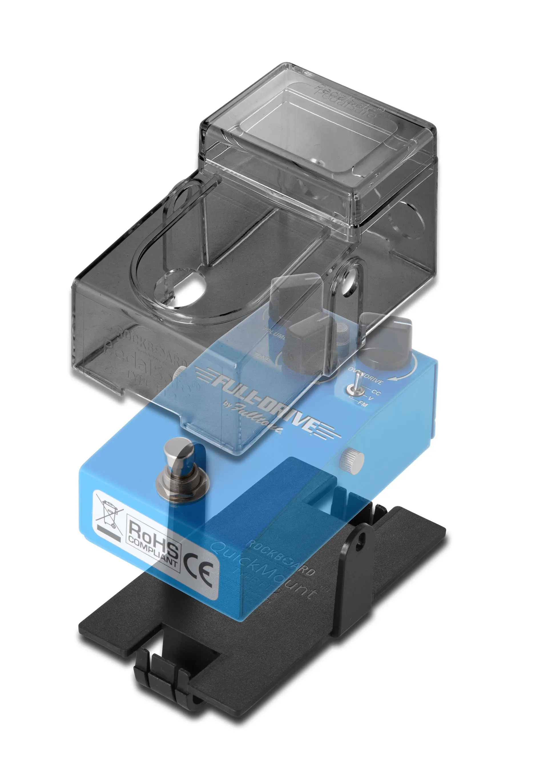 The RockBoard PedalSafe system was designed to keep your pedals safe, secure and in pristine condition. The flexible PedalSafe Type FT2 Protective Cover and the QuickMount Pedal Mounting Plate fit for FULLTONE CS Range Booster, Fulldrive 1, Mas-Malo & QueenBee pedals. The crystal-clear pedal cover allows you to see your settings while the shell is protecting them against accidental adjustments. This set includes the protective cover (PedalSafe) and the RockBoard mounting plate (QuickMount). The RockBoard QuickMount system was designed to do away with sticky hook and loop tape that attracts dust and dirt and is a hassle to remove from your pedals. It fits perfectly in the RockBoard slot grid on our pedalboards and allows for instant secure mounting of your pedals. The QuickMount plates are designed to screw onto the back of your pedals, using the original screws (or supplied replacement screws) and to be easily removable without any residue.
