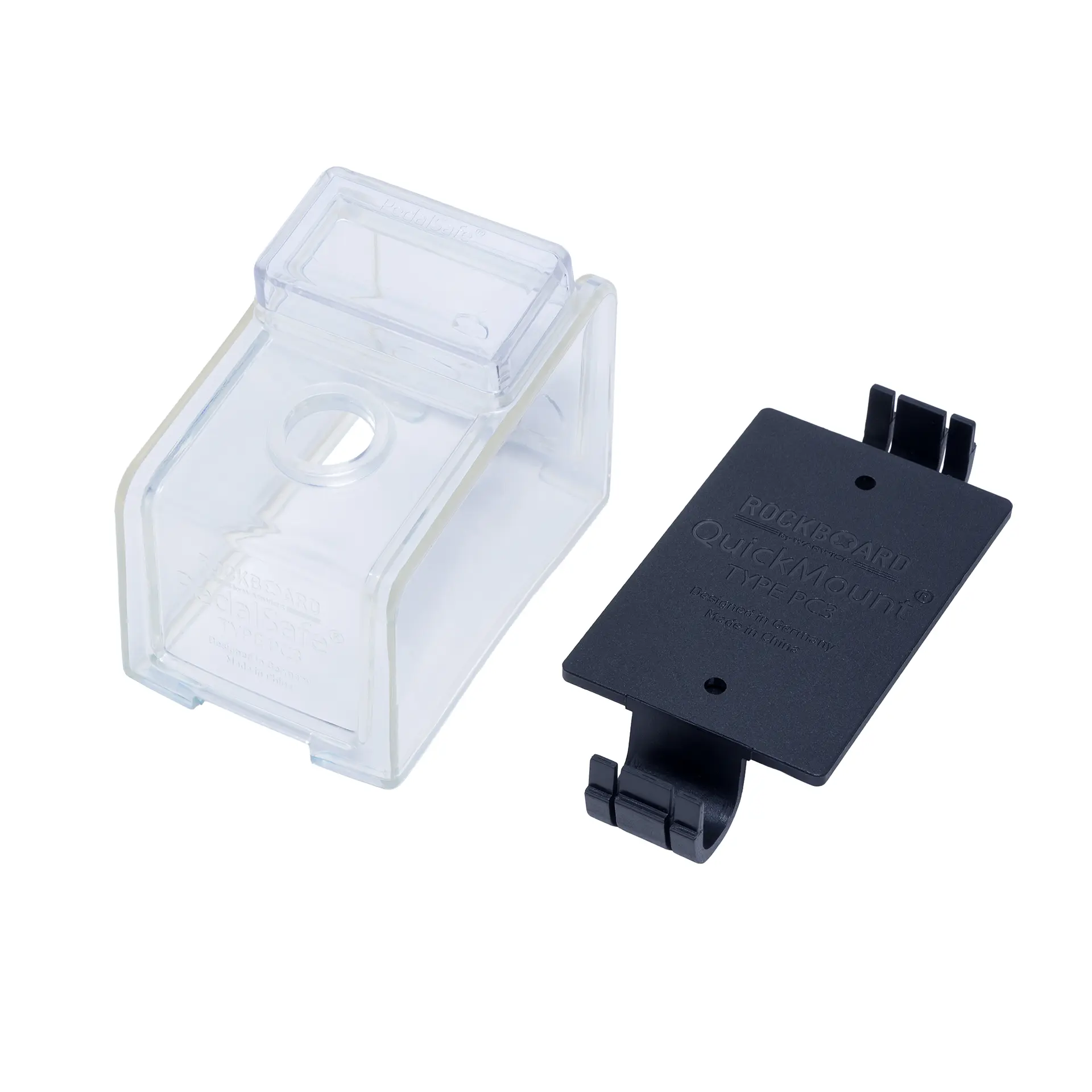 The set includes both the PedalSafe protective cover and the QuickMount mounting plate. The QuickMount system was developed as a clean and practical alternative to conventional Velcro tape, which attracts dust and dirt and is difficult to remove from pedals.