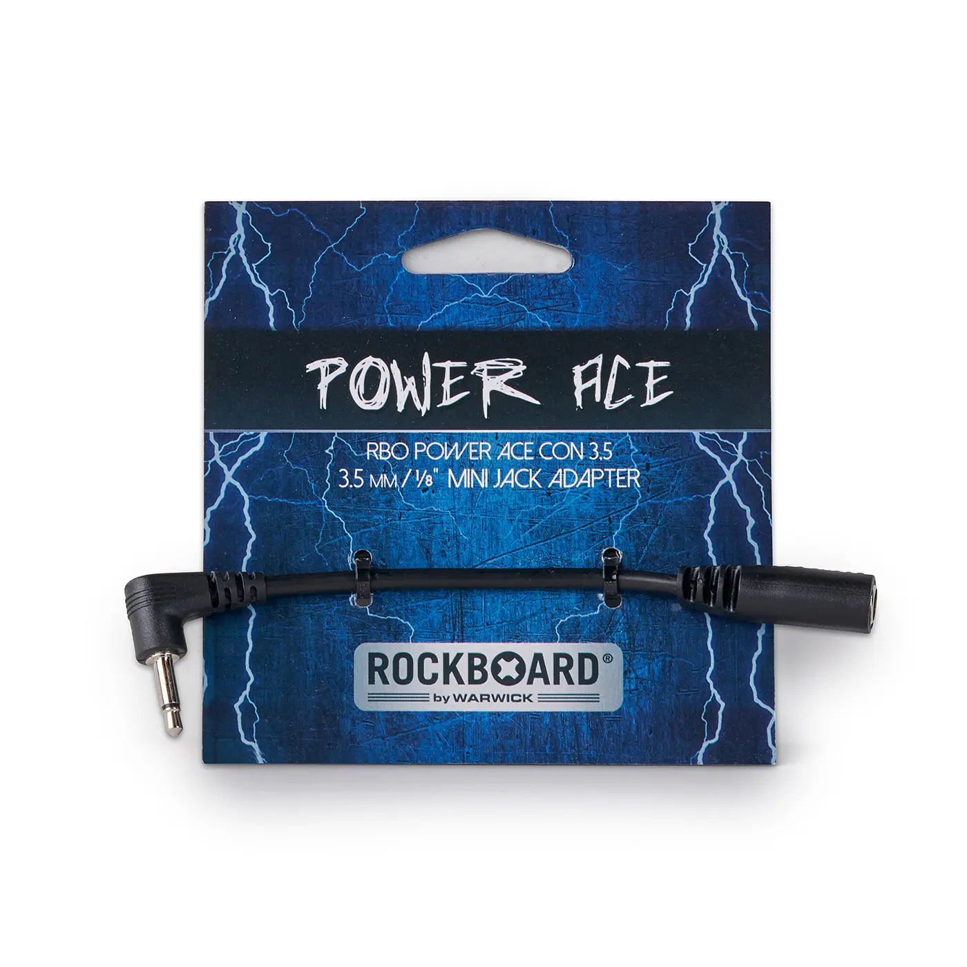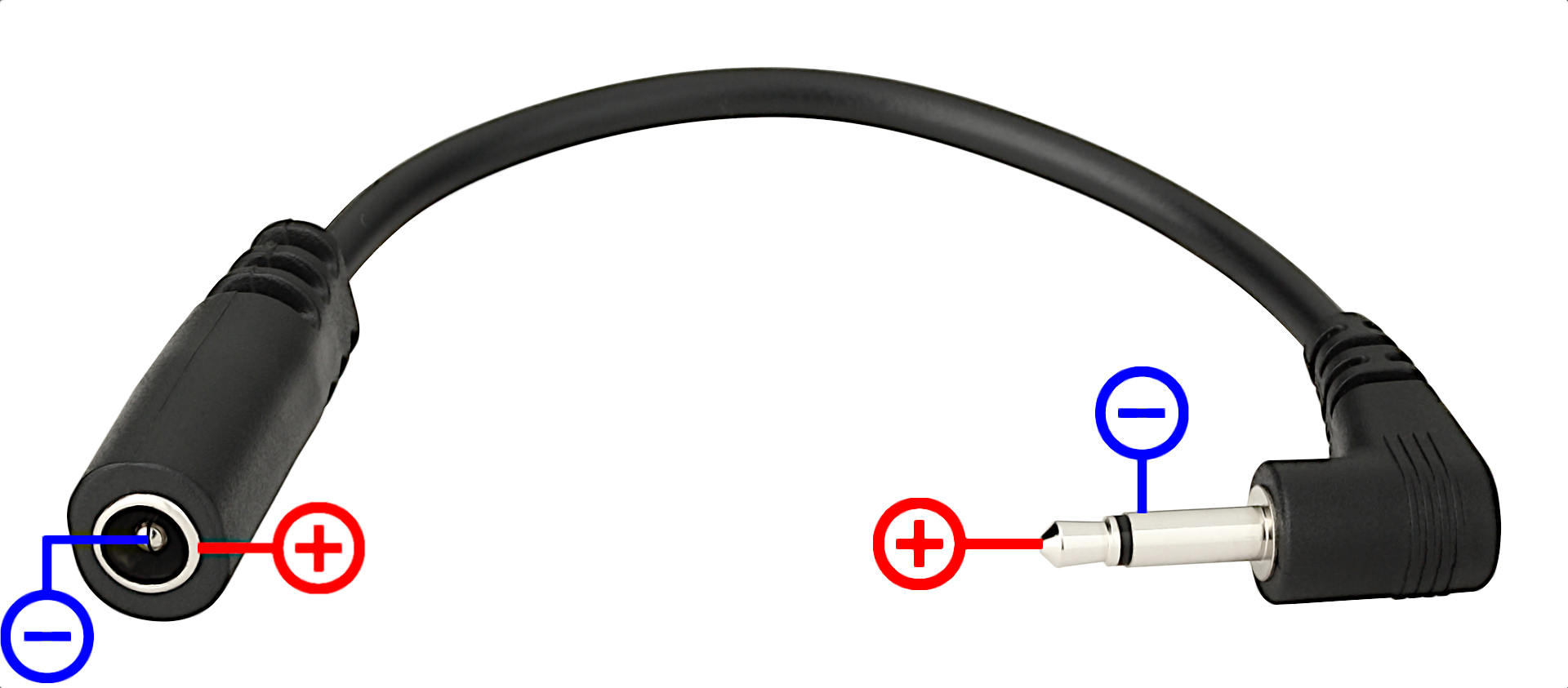 The Power Ace Mini Jack Converter is an adapter cable for powering effect pedals with a 3.5 mm mini jack socket from a 2.1 mm x 5.5 mm barrel plug.