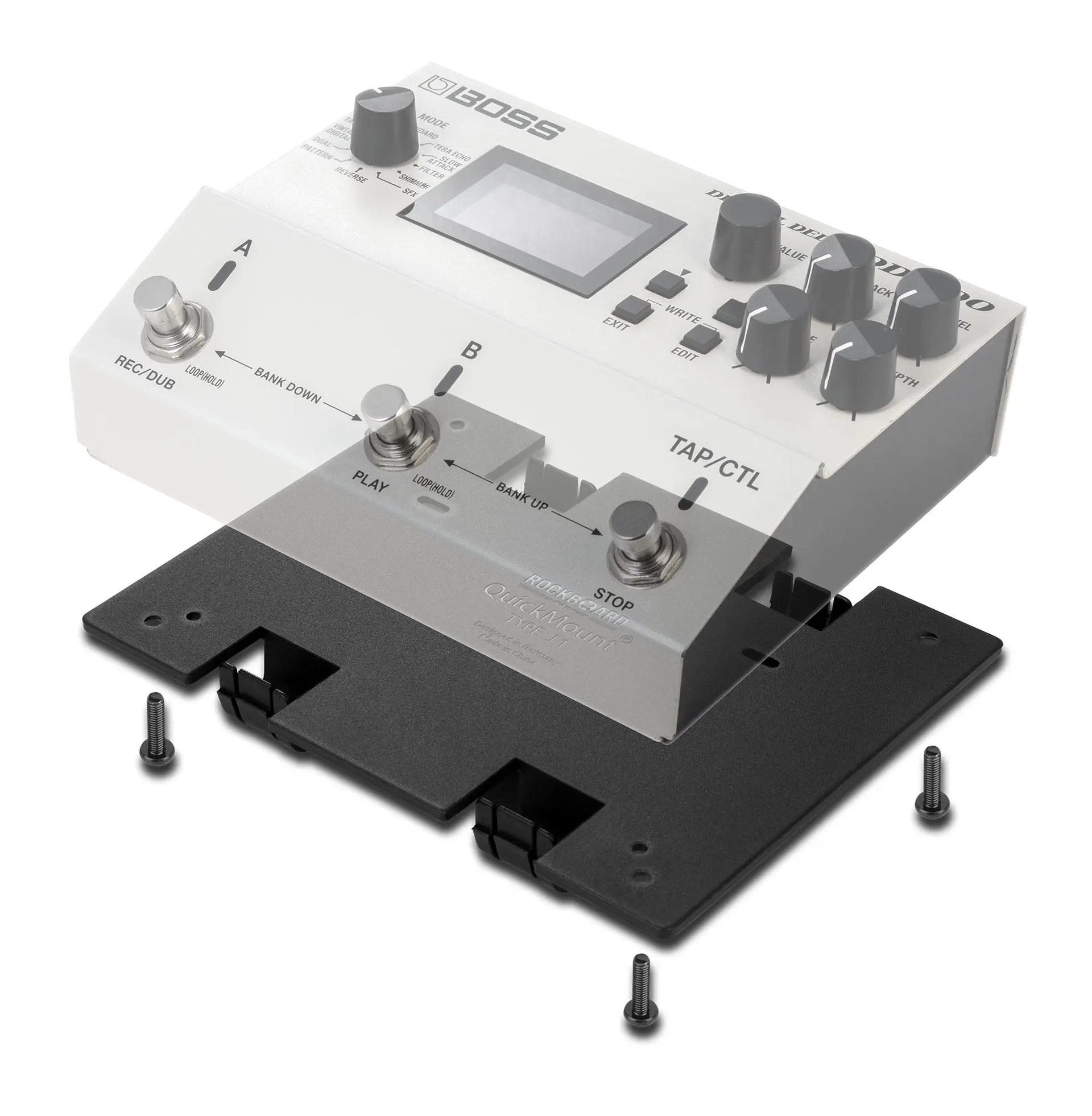 The RockBoard QuickMount System was designed to do away with sticky hook and loop tape that attracts dust and dirt and is a hassle to remove from your pedals. It fits perfectly in the RockBoard Slot Grid on our pedalboards and allows instant secure mounting of your pedals. The QuickMount plates are designed to screw onto the back of your pedals, using the original screws (or supplied replacement screws) and to be easily removable without any residue. Most RockBoard QuickMount Pedal Mounting Plates will fit a variety of different pedals.