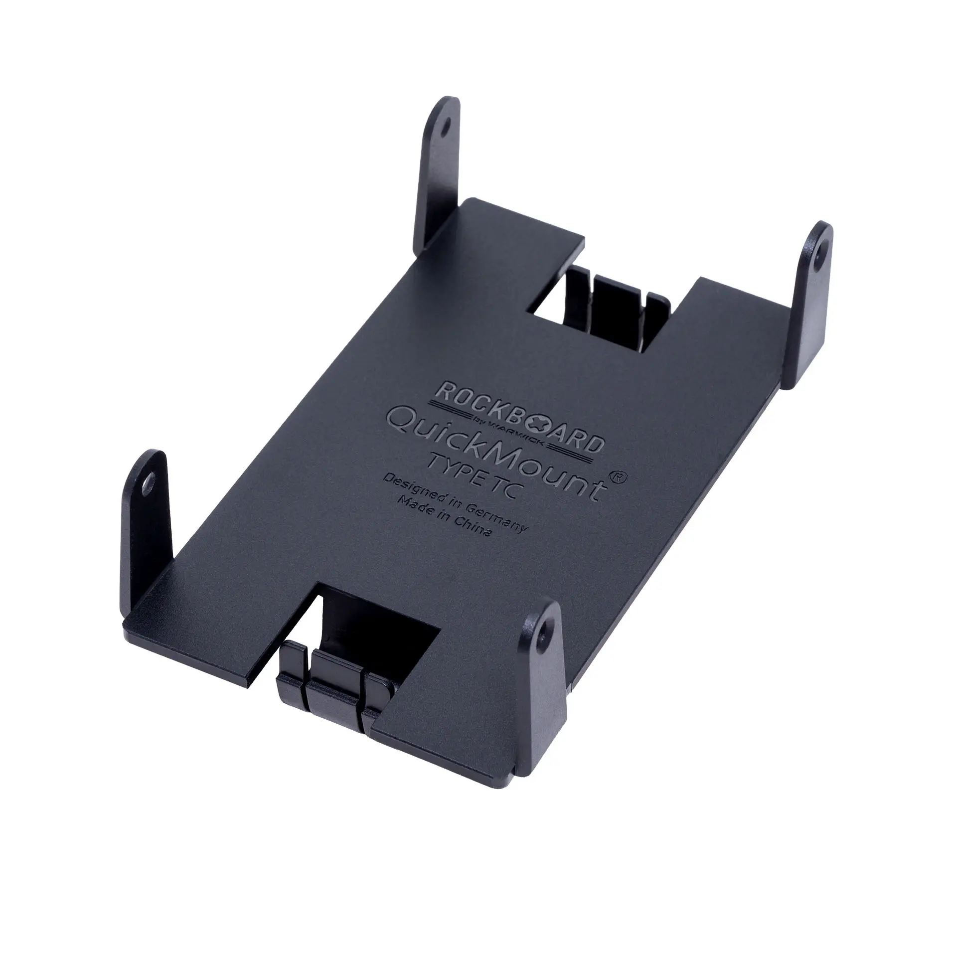 The QuickMount mounting plate Type TC was specifically designed for the TC ELECTRONIC® 3rd Dimension Chorus, Afterglow Chorus, Blood Moon Phaser, Choka Tremolo, Cinders Overdrive, Crescendo Auto Swell, Drip Spring Reverb, Echobrain Analog Delay, El Cambo Overdrive, Eyemaster Metal Distortion, Fangs Metal Distortion, Flourescence Shimmer Reverb, Forcefield Compressor, Gauss Tape Echo, Honey Pot Fuzz, Iron Curtain Noise Gate, Nether Octaver, Rush Booster, Rusty Fuzz, Skysurfer Reverb, Tailspin Vibrato, The Prophet Digital Delay, Thunderstorm Flanger and Vibraclone Rotary pedals, and many other similarly designed effects from other manufacturers. All RockBoard QuickMount pedal mounting plates with a flat surface feature a reusable silicone adhesive pad that adheres securely to any smooth surface without leaving residue, ensuring that pedals with different screw spacings can also be mounted reliably.